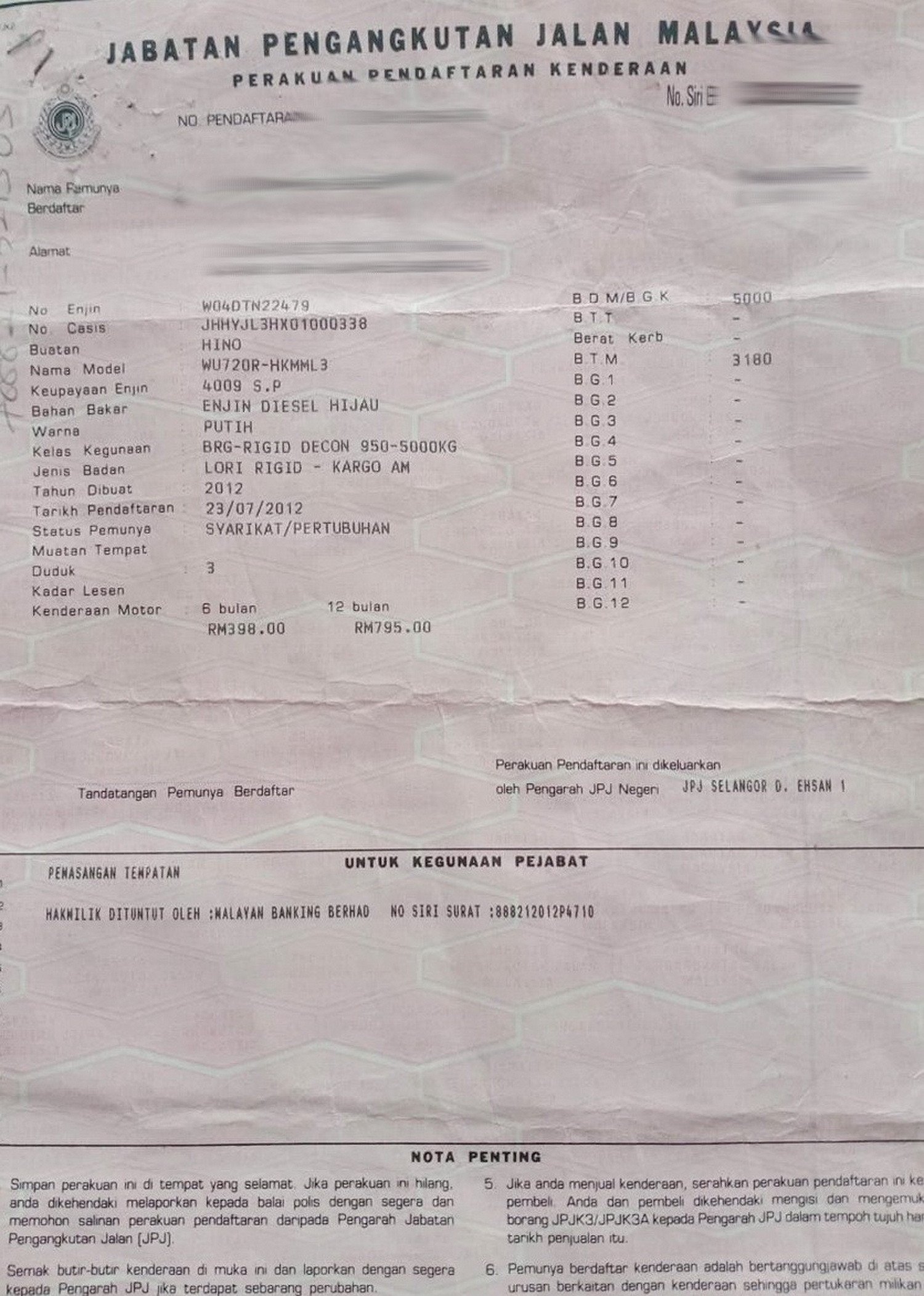 2. Selling Price for vehicle only, not included insurance, roadtax and handling etc.