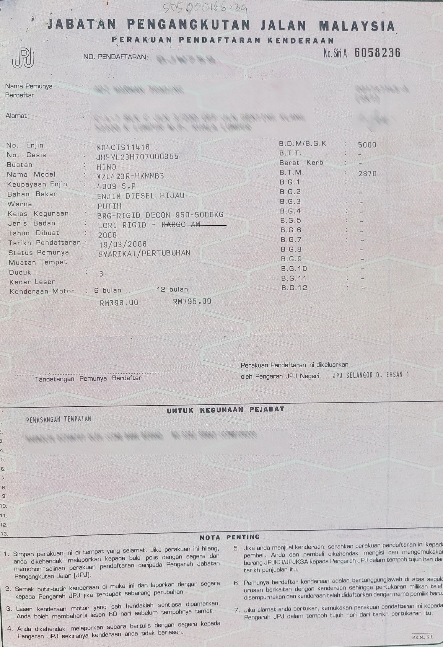 2. Selling Price for vehicle only, not included insurance, roadtax and handling etc.