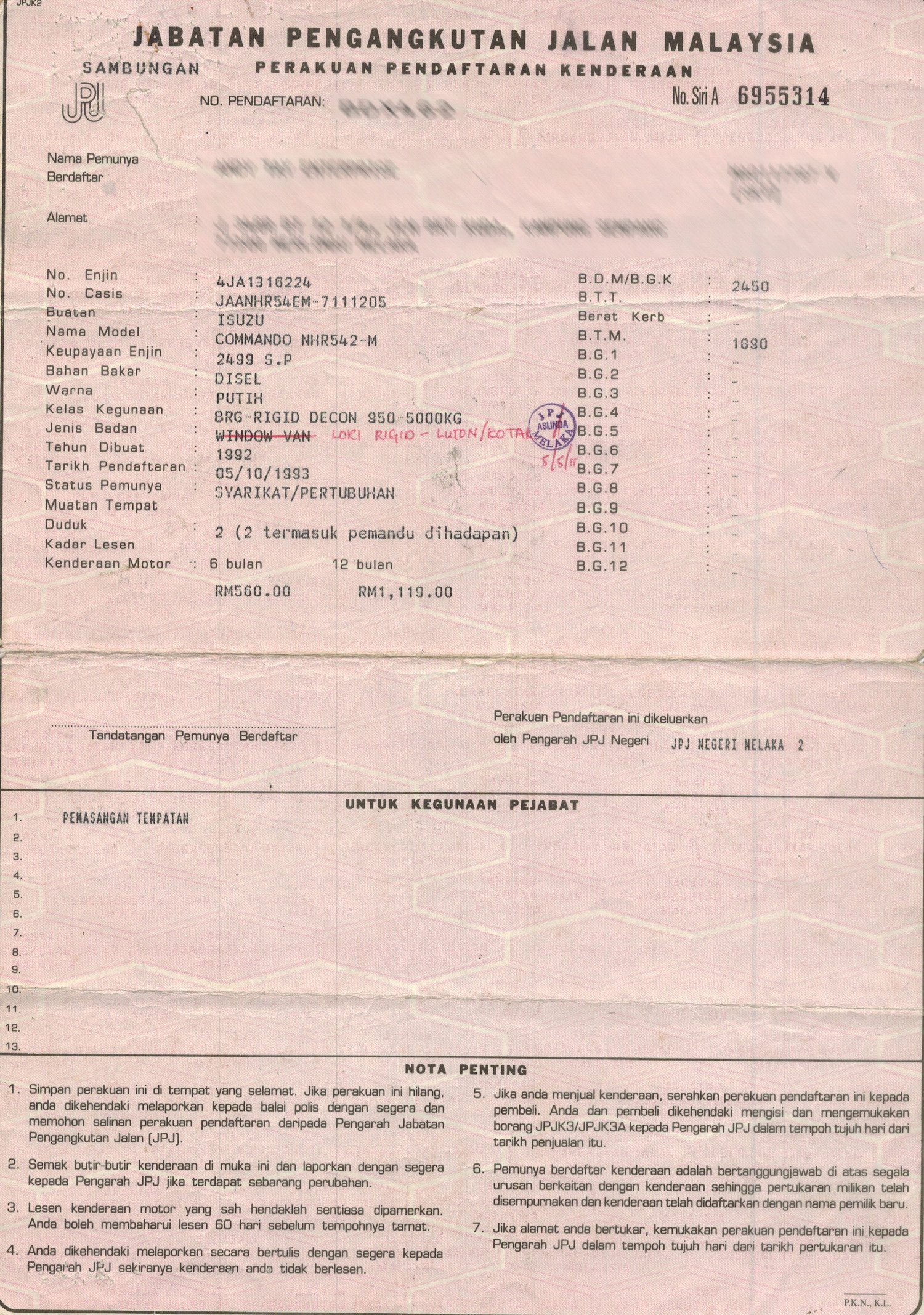 2. Selling Price for vehicle only, not included insurance, roadtax and handling etc.
