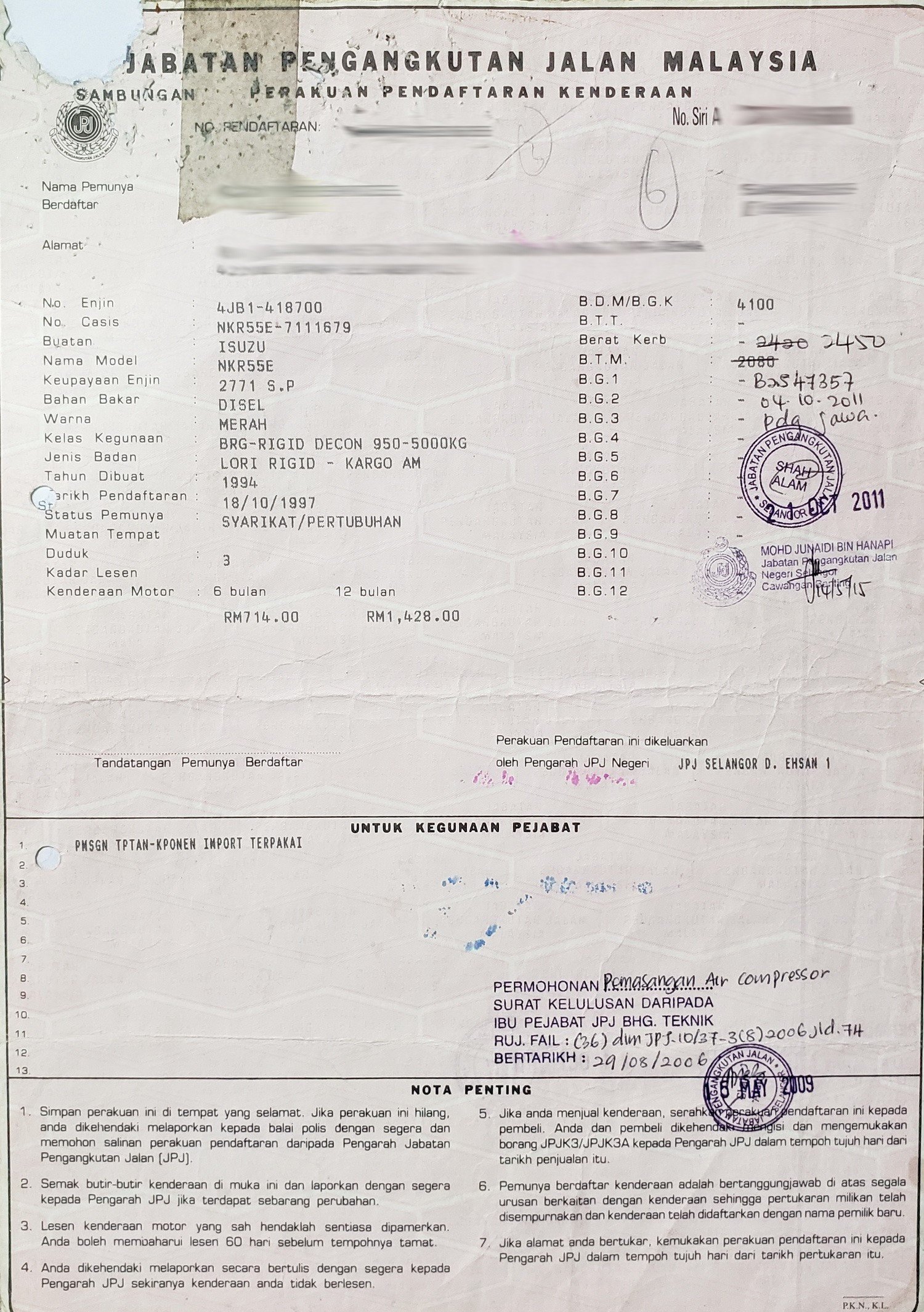 2. Selling Price for vehicle only, not included insurance, roadtax and handling etc.