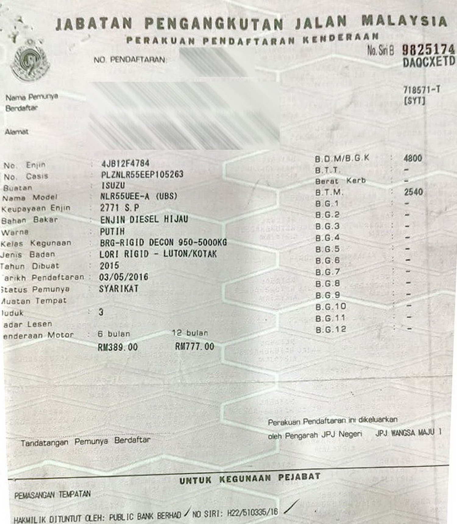 2. Selling Price for vehicle only, not included insurance, roadtax and handling etc.