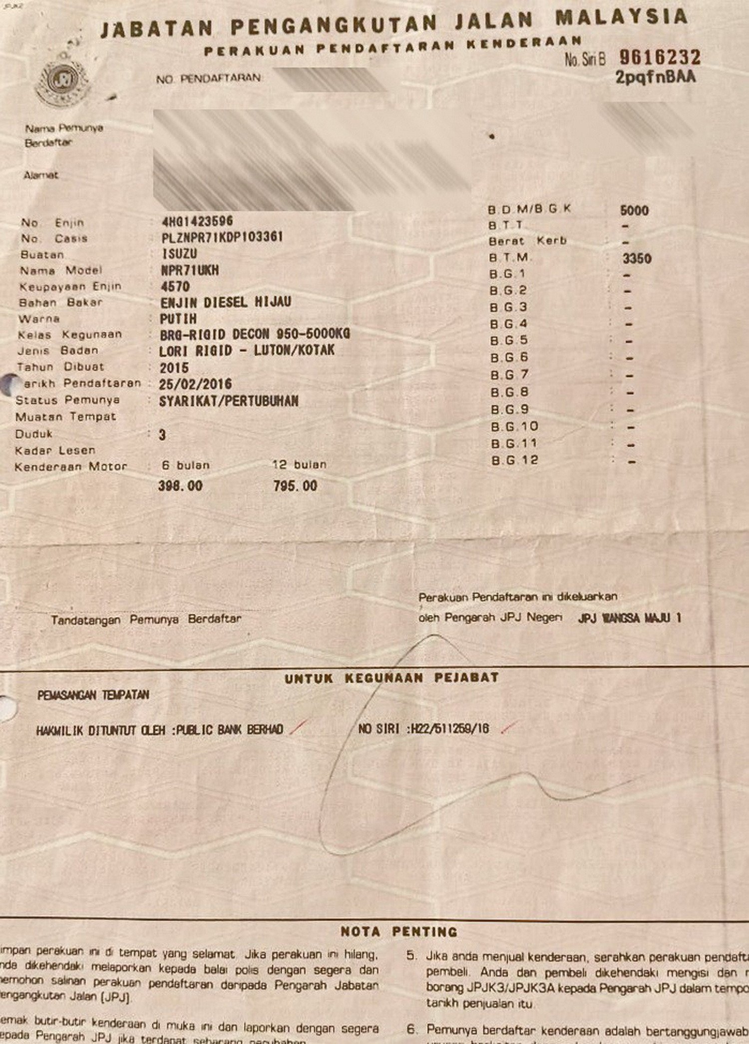 2. Selling Price for vehicle only, not included insurance, roadtax and handling etc.