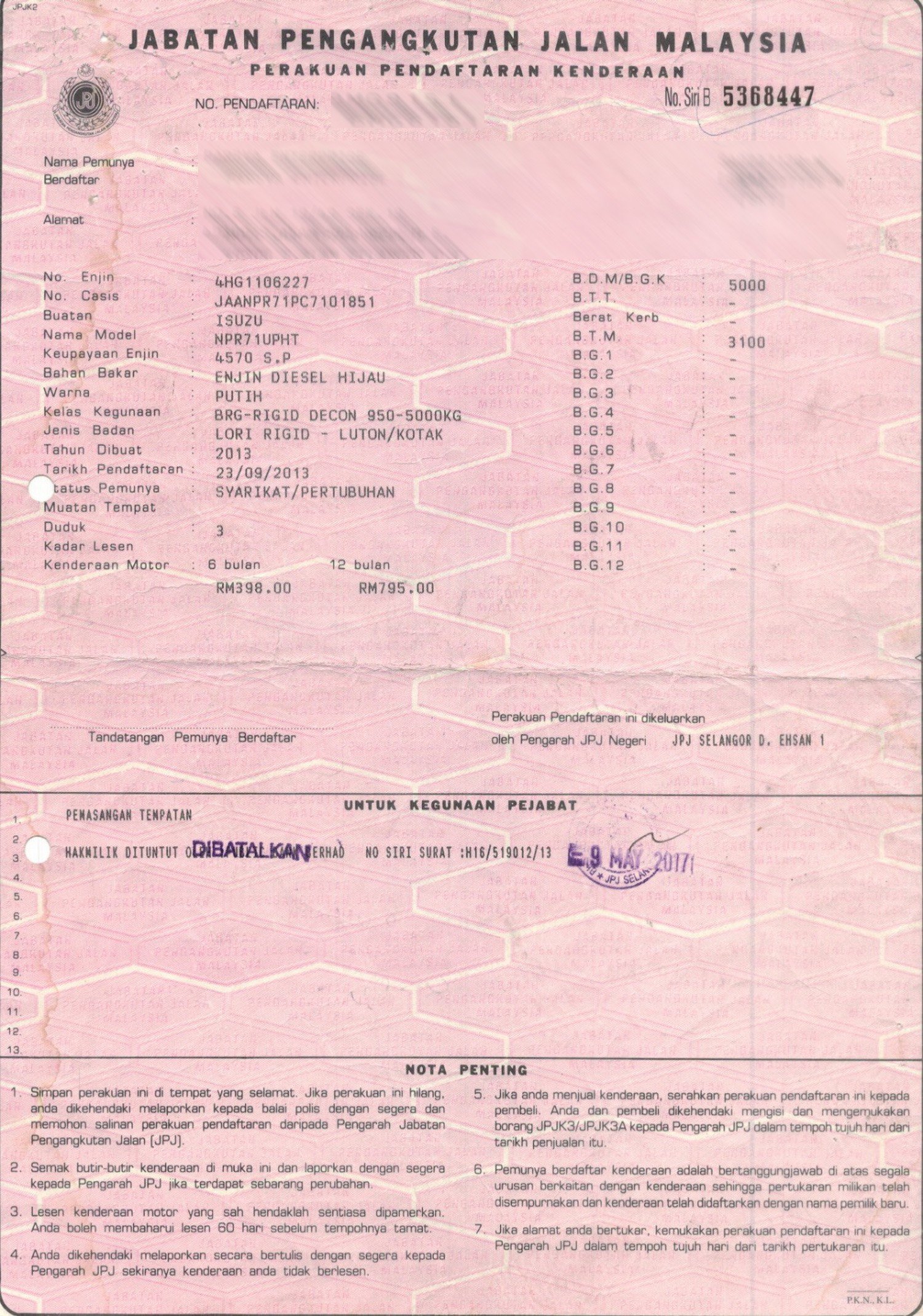 2. Selling Price for vehicle only, not included insurance, roadtax and handling etc.