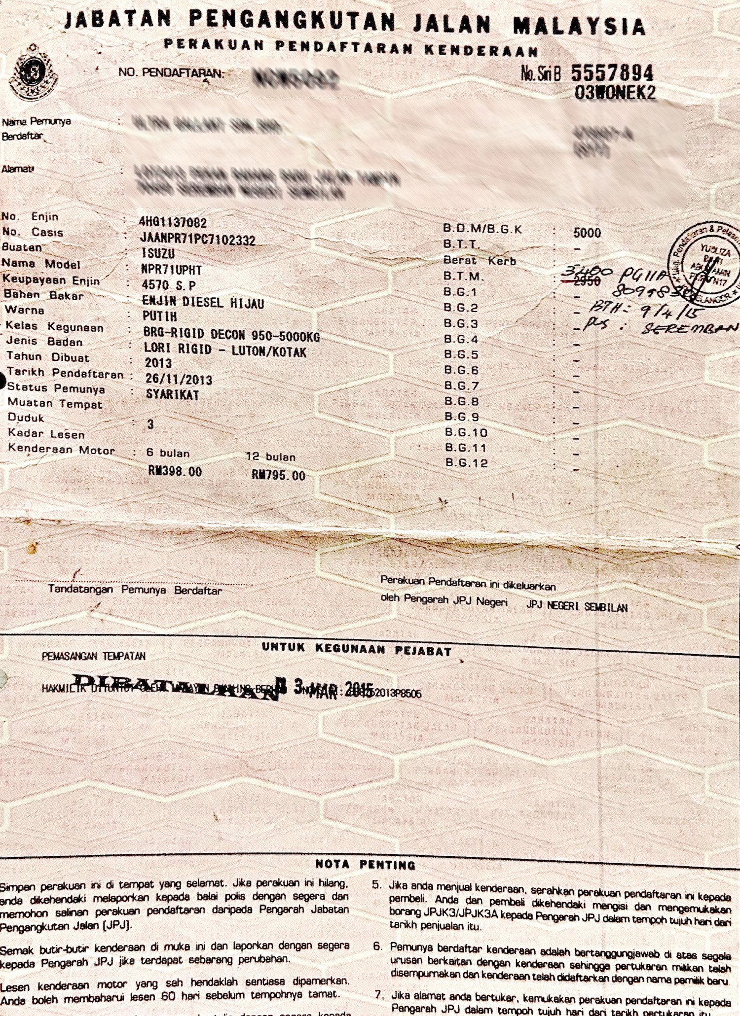 2. Selling Price for vehicle only, not included insurance, roadtax and handling etc.