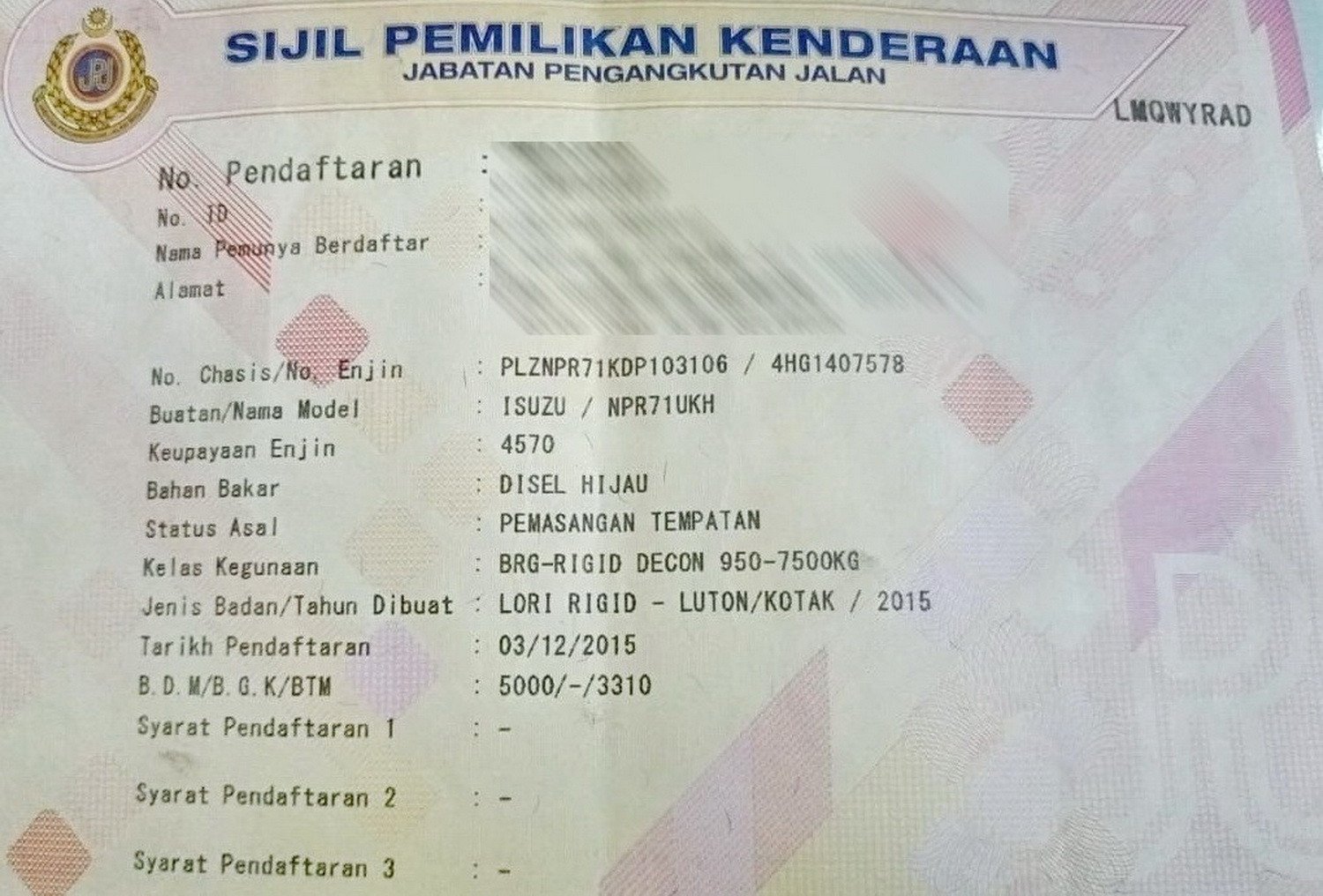 2. Selling Price for vehicle only, not included insurance, roadtax and handling etc.