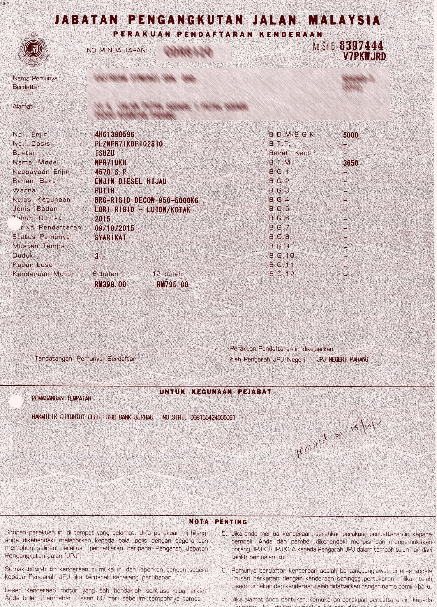 2. Selling Price for vehicle only, not included insurance, roadtax and handling etc.