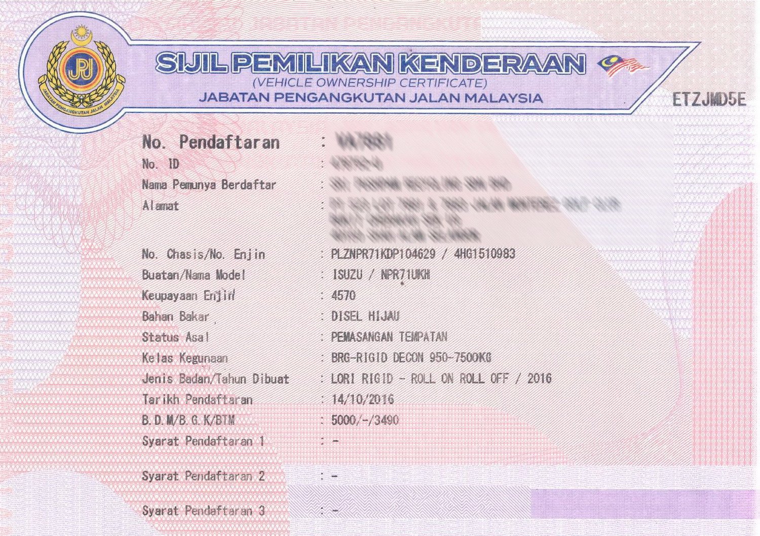 2. Selling Price for vehicle only, not included insurance, roadtax and handling etc.