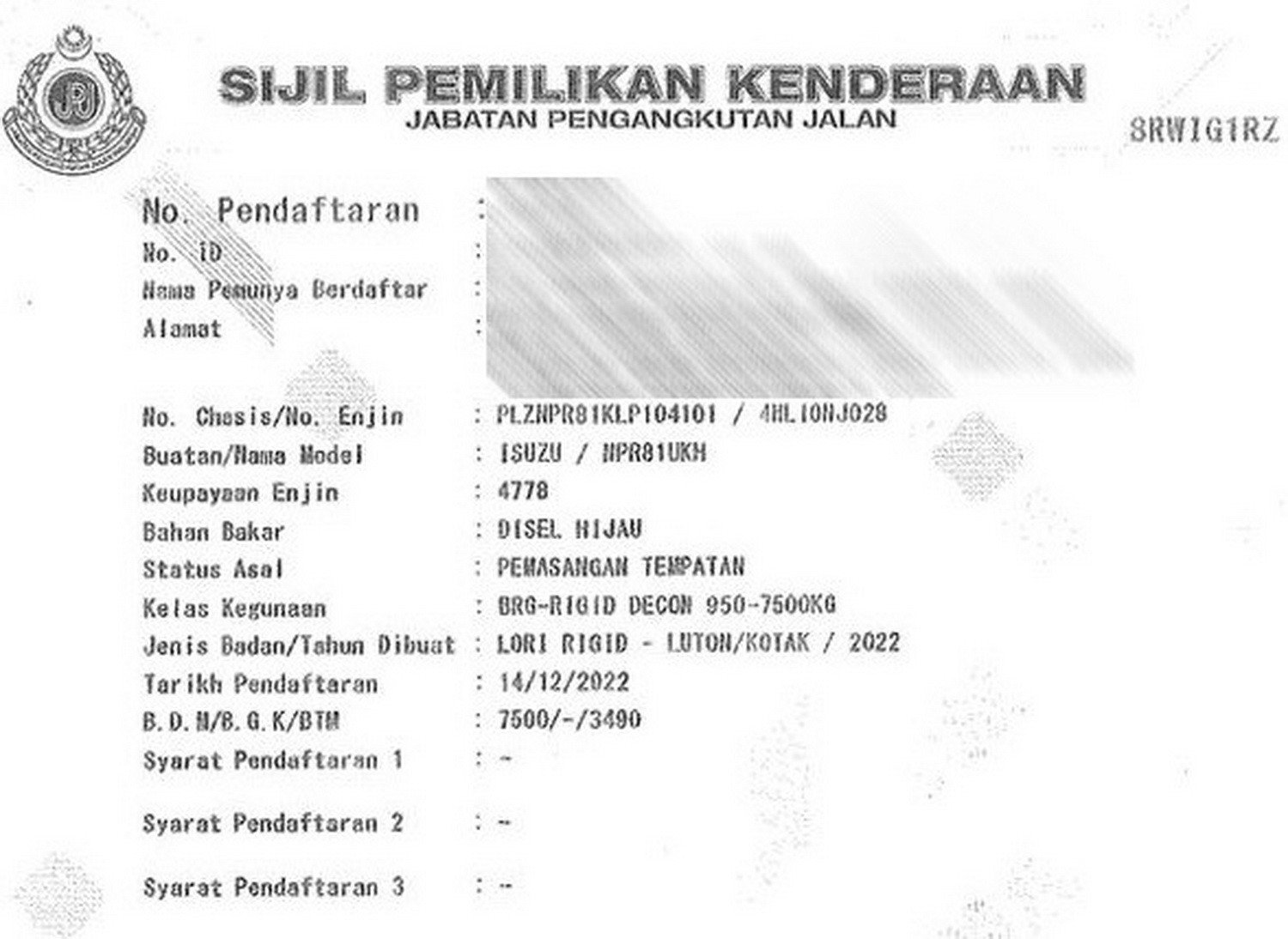 2. Selling Price for vehicle only, not included insurance, roadtax and handling etc.