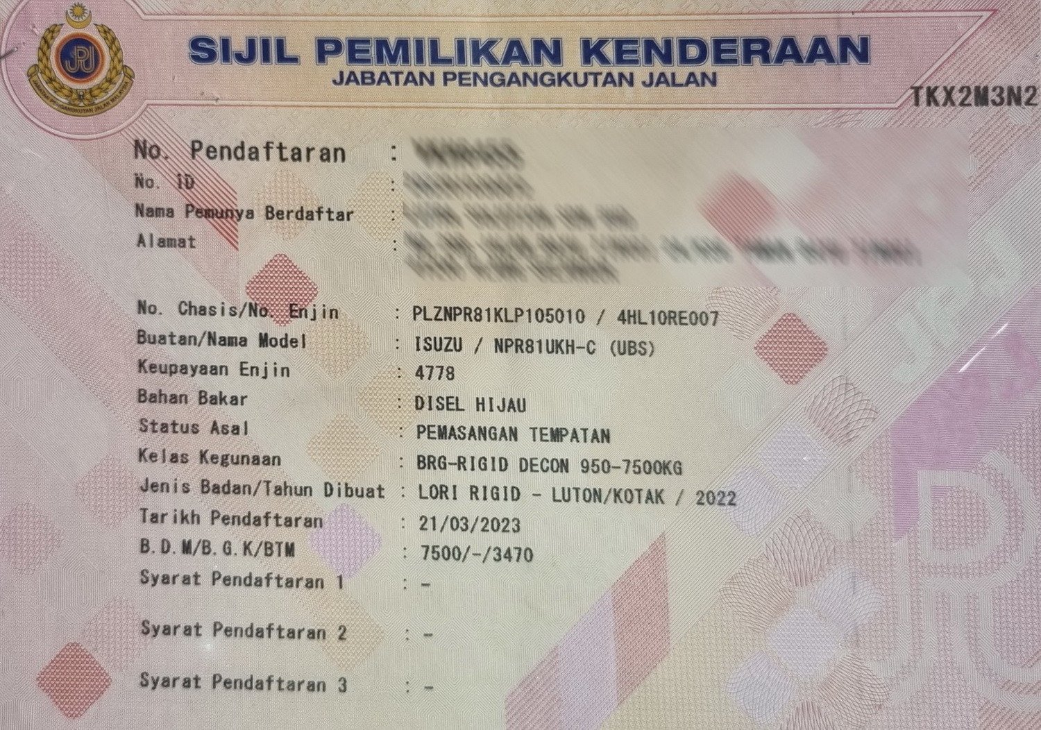 2. Selling Price for vehicle only, not included insurance, roadtax and handling etc.