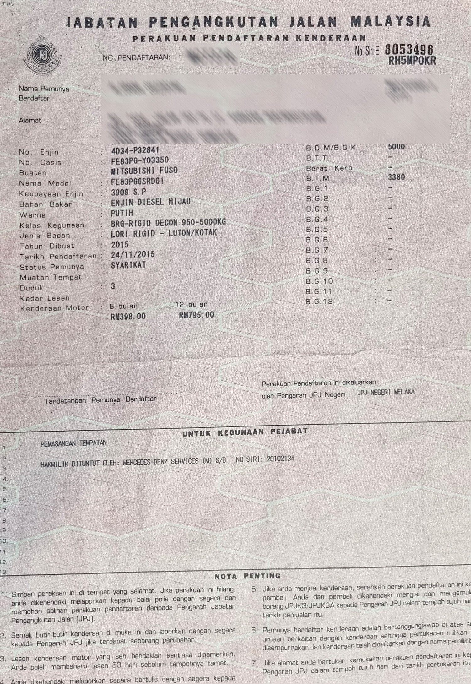 2. Selling Price for vehicle only, not included insurance, roadtax and handling etc.
