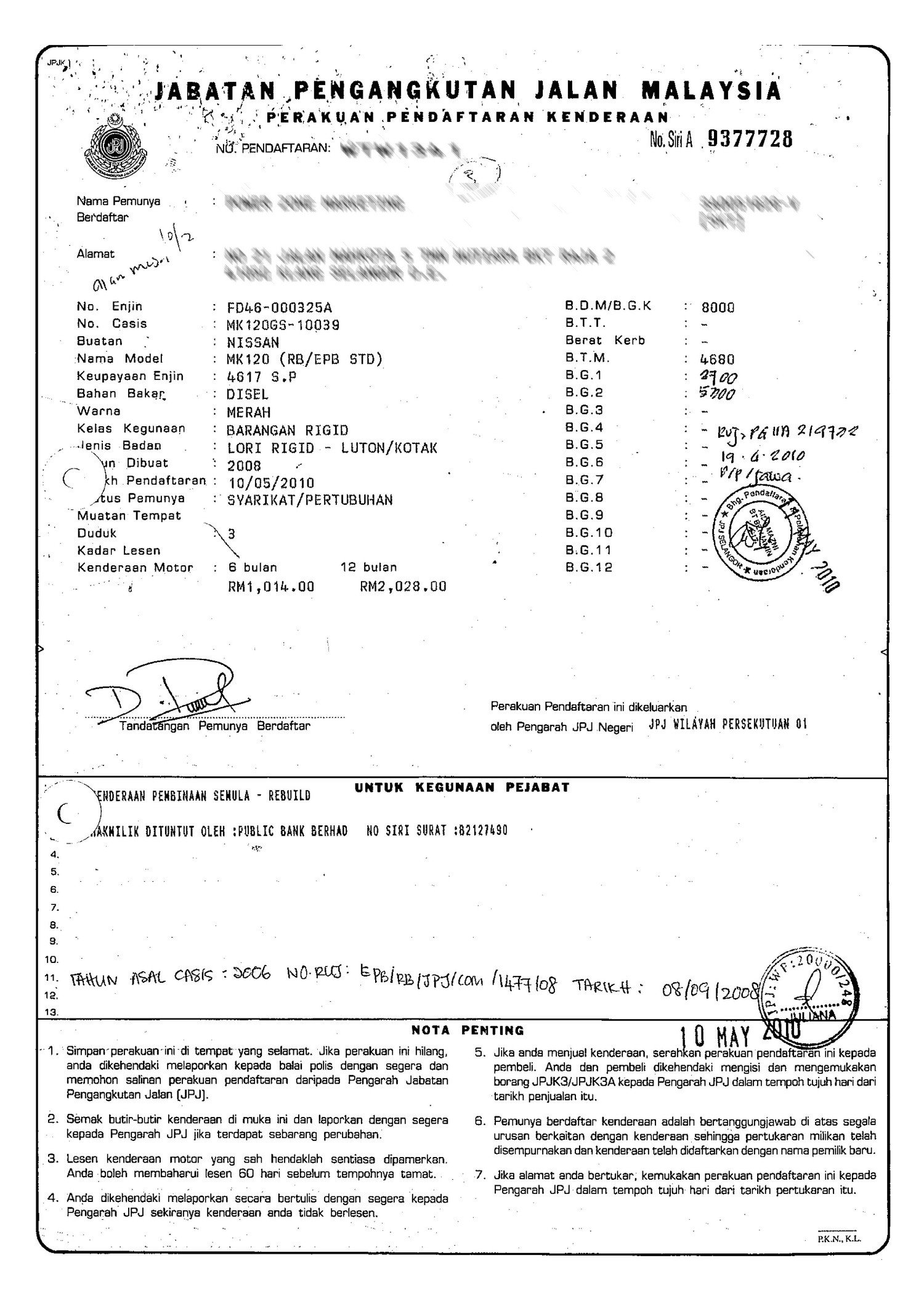 2. Selling Price for vehicle only, not included insurance, roadtax and handling etc.