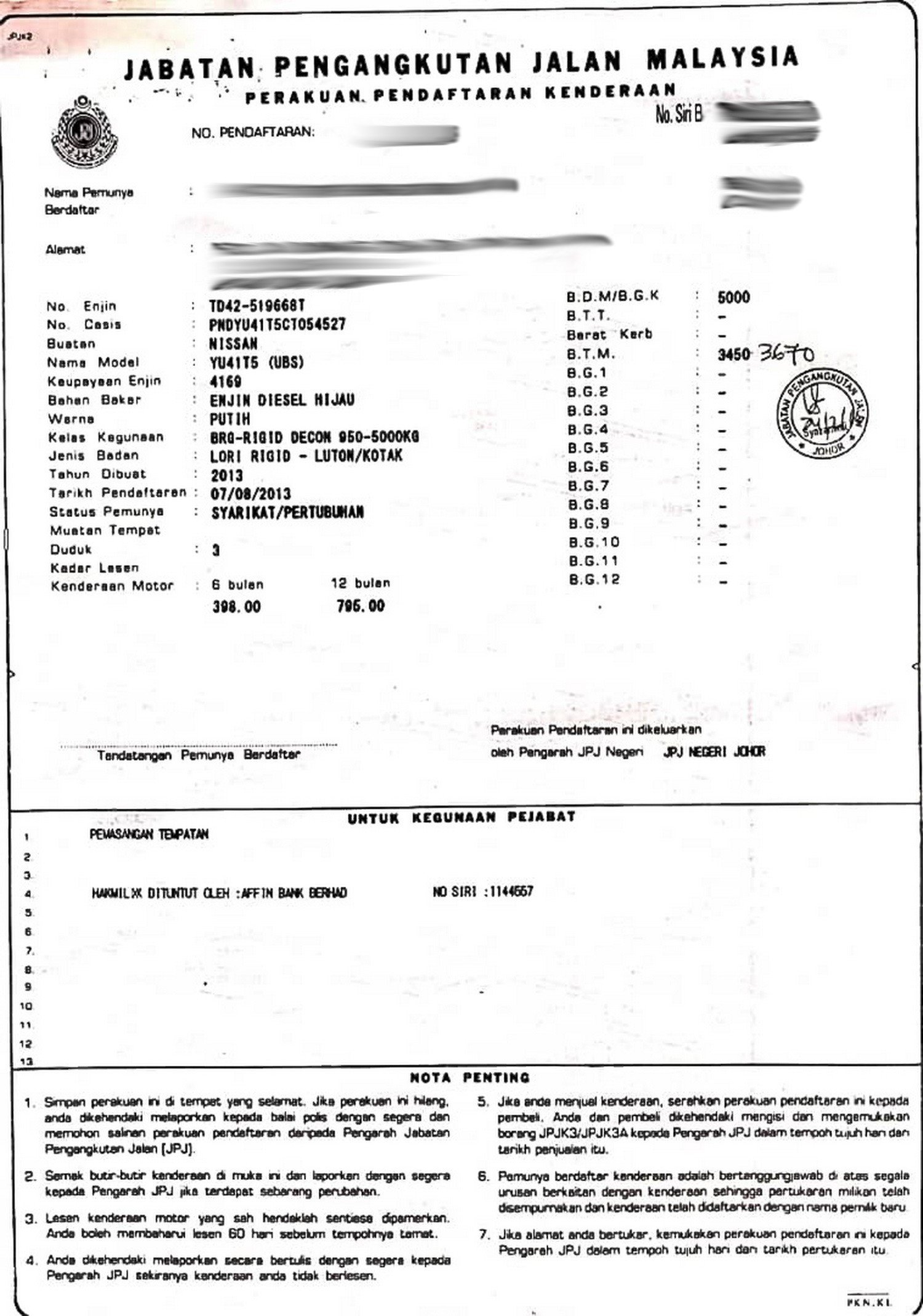 2. Selling Price for vehicle only, not included insurance, roadtax and handling etc.