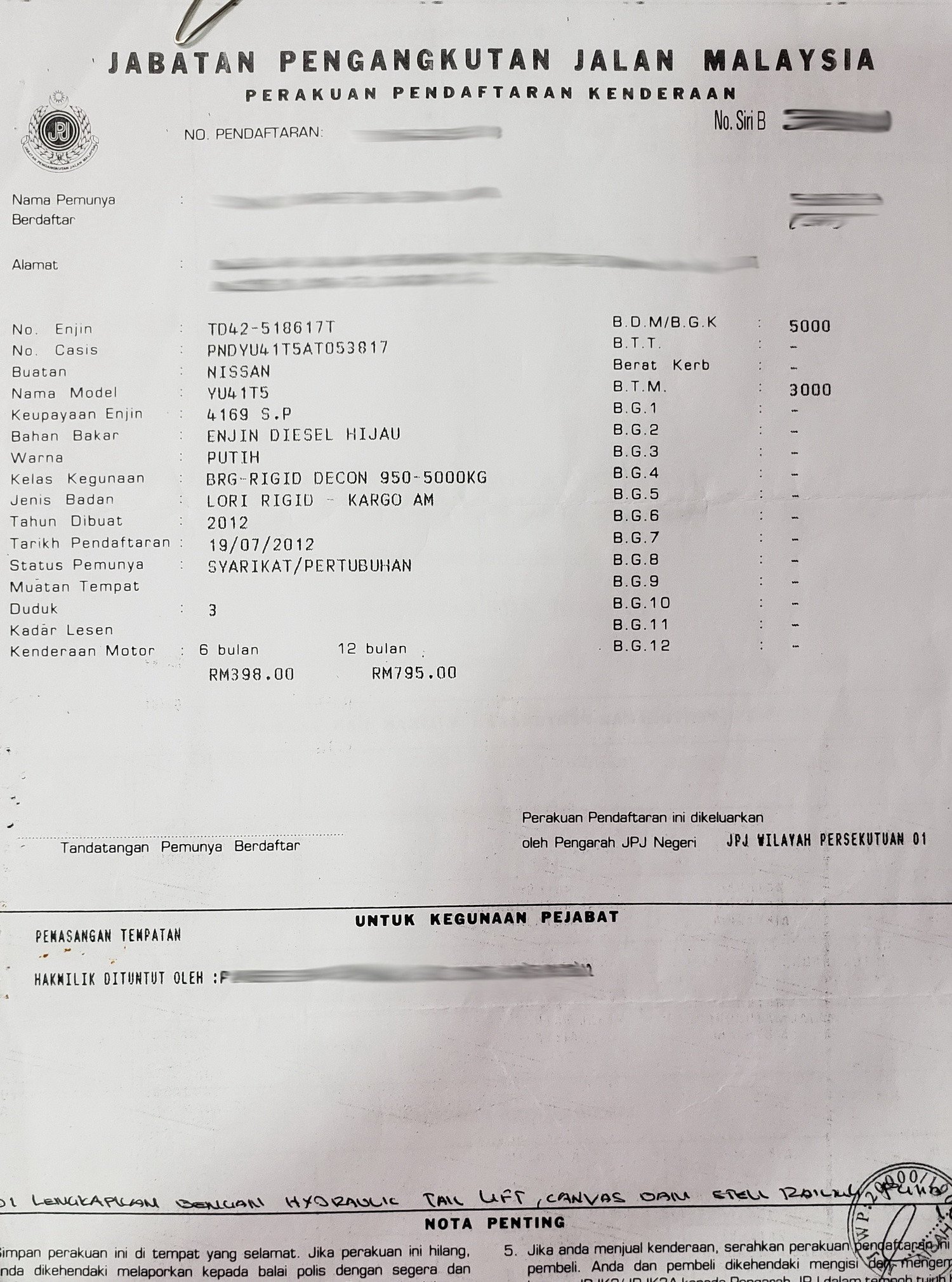 2. Selling Price for vehicle only, not included insurance, roadtax and handling etc.