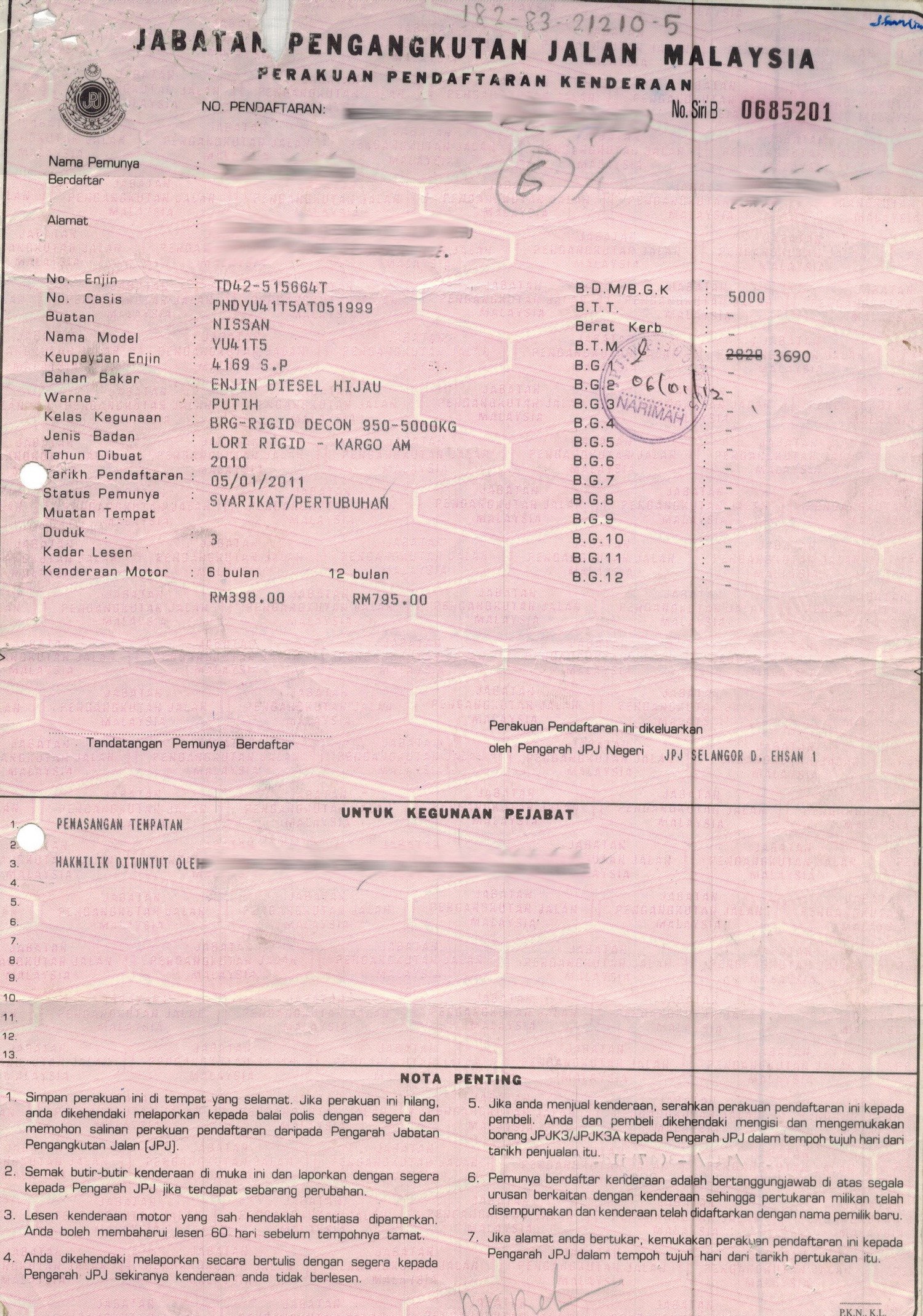 2. Selling Price for vehicle only, not included insurance, roadtax and handling etc.