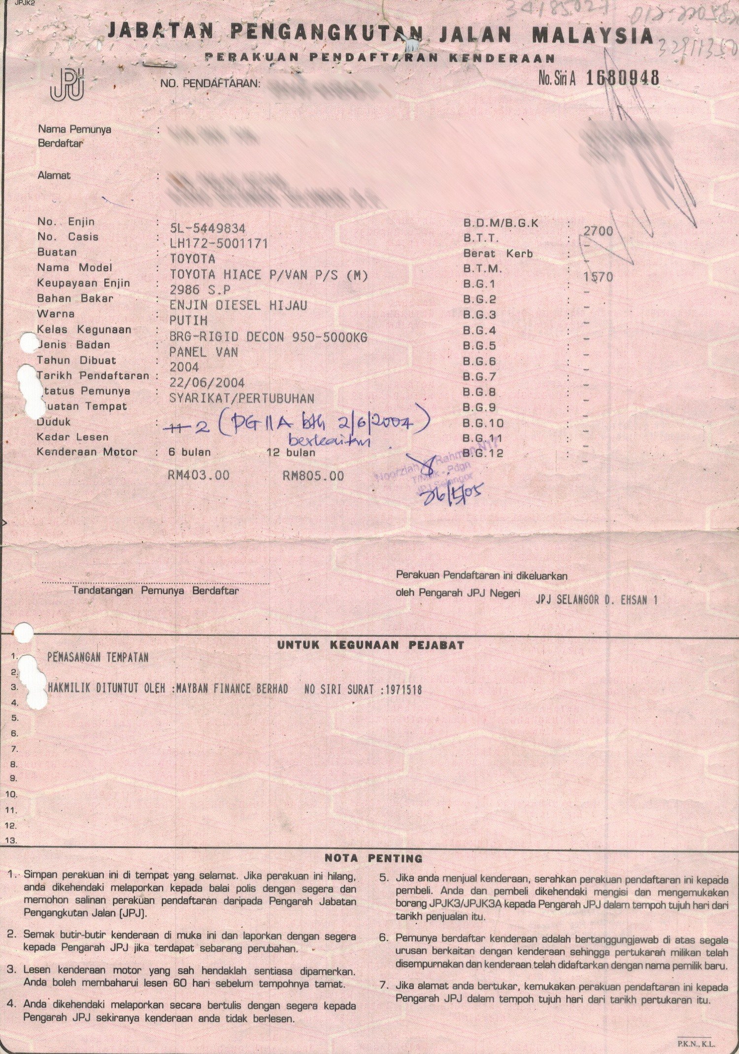 2. Selling Price for vehicle only, not included insurance, roadtax and handling etc.